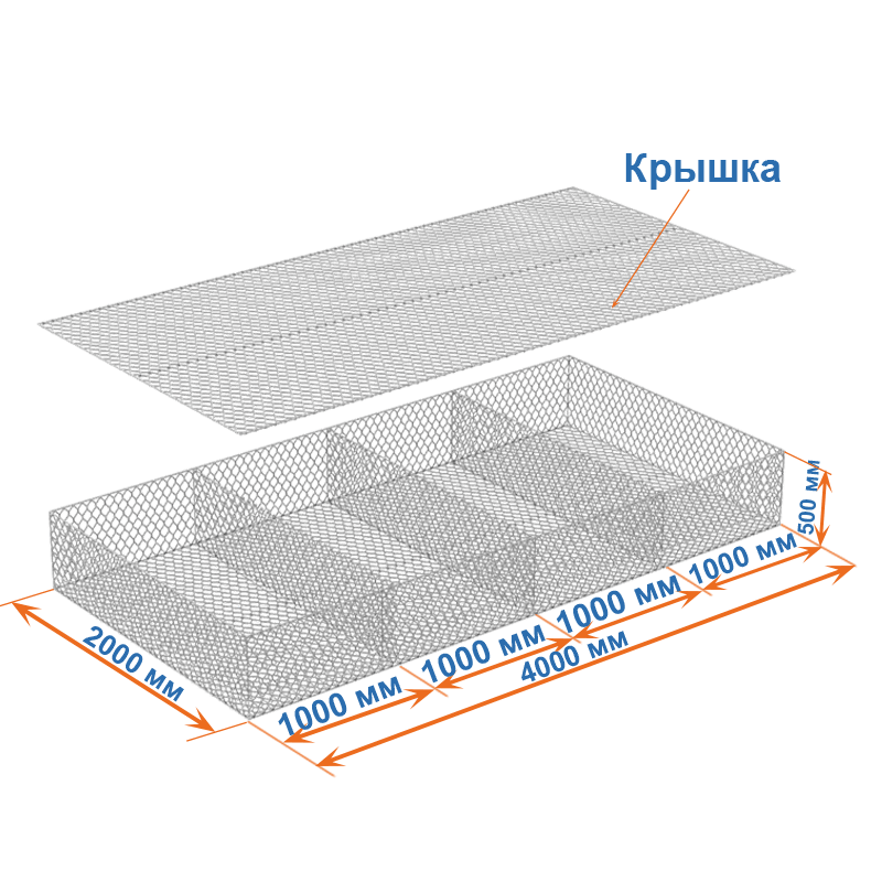 Габион матрац  ГСИ-М 4х2х0,5 оцинкованный, Ø проволоки 2,7 мм, размер ячейки 8х10 см фото
