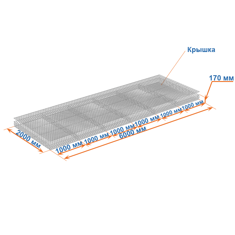 Габион матрац ГСИ-М 6х2х0,17 оцинкованный, Ø проволоки 3,0 мм, размер ячейки 8х10 см